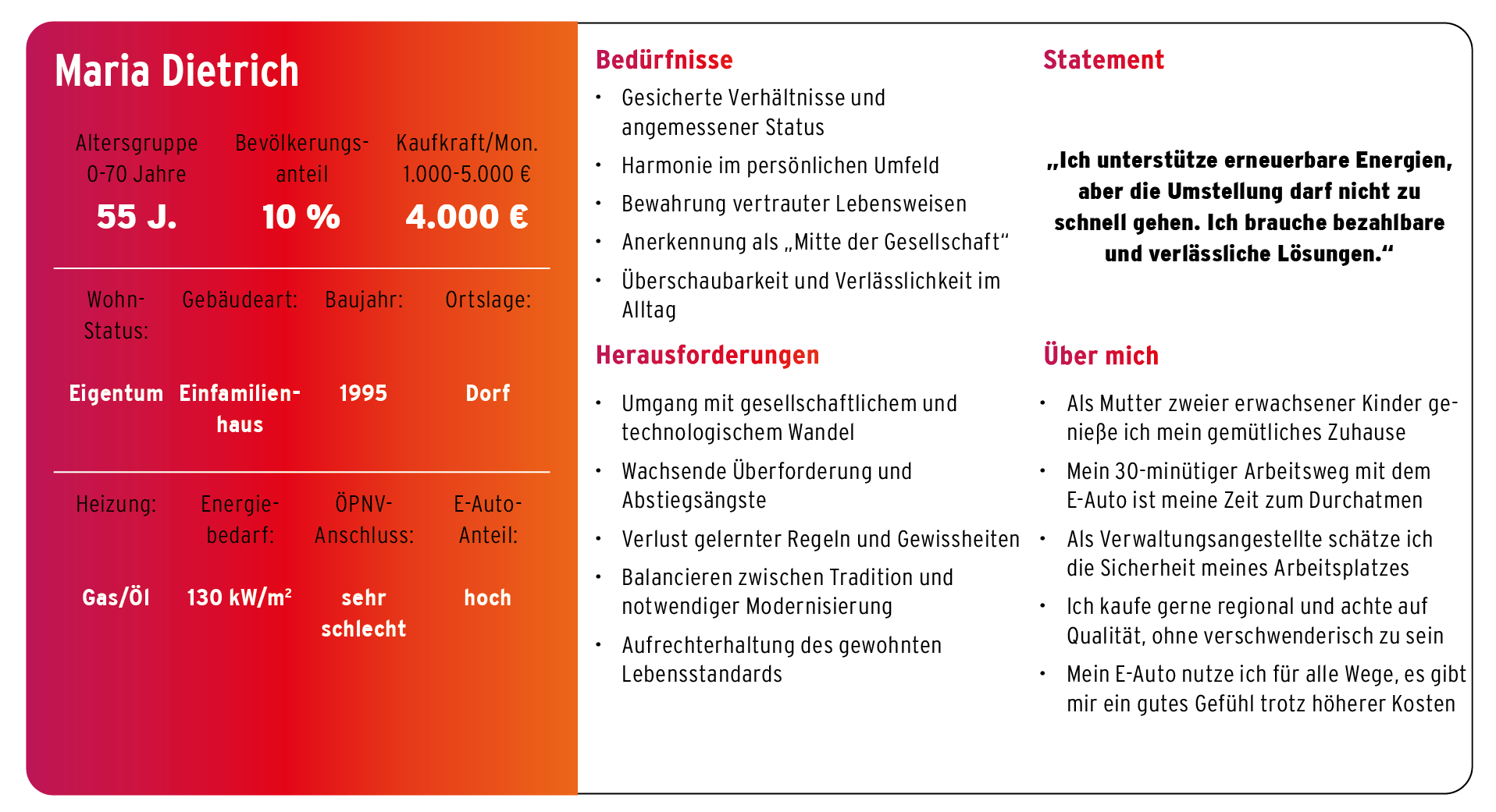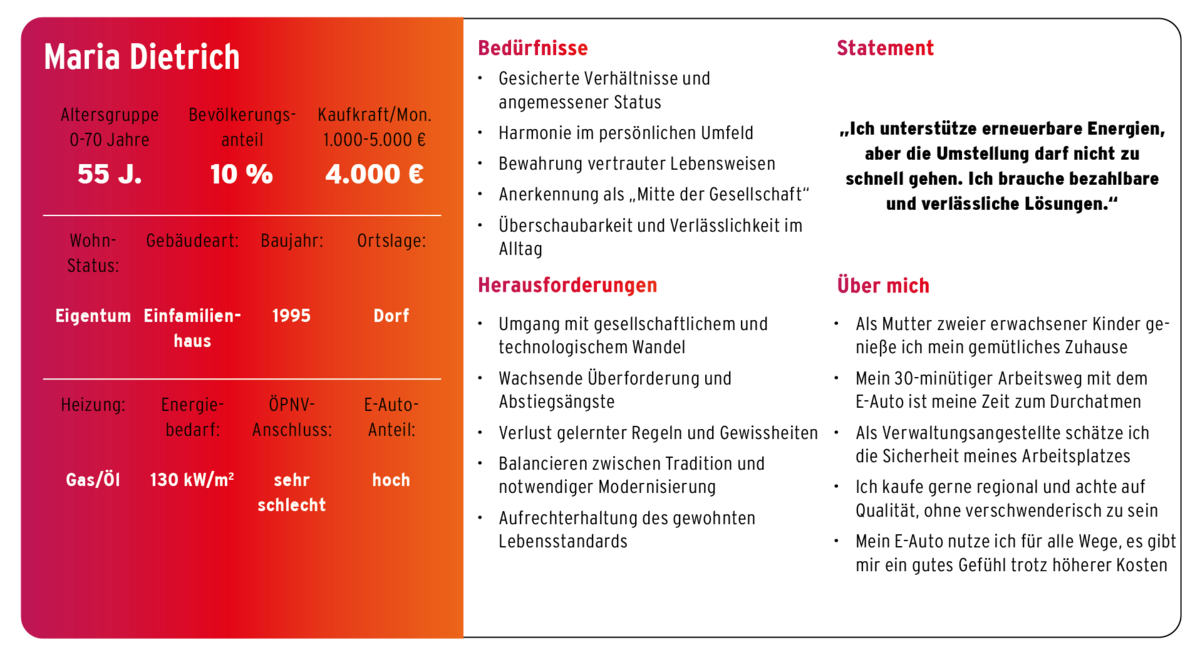 Die Wahl der Zielgruppen neuer Produkte ist nicht nur abhängig von technischen Faktoren wie Energiebedarf, Heizungsanlage oder Gebäudetyp, sondern vielmehr von sozioökonomischen Faktoren wie der Kaufkraft, dem Alter, dem Wohnstatus, der Ortslage sowie dem sozialen Milieu. Informationen, die sich in einer kommunalen Wärmeplanung in der Regel nicht wiederfinden.