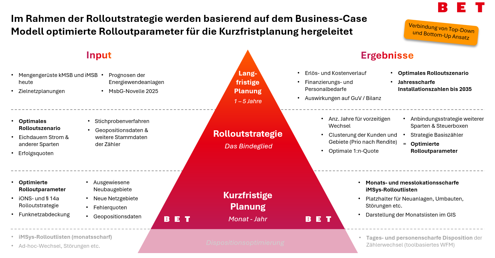 Strukturierte Identifikation und Priorisierung von iMSys-Use-Cases (Pflicht vs. Full), qualitative und – wo möglich – quantitative Nutzenbewertung sowie Ableitung eines umsetzbaren Zielbilds.